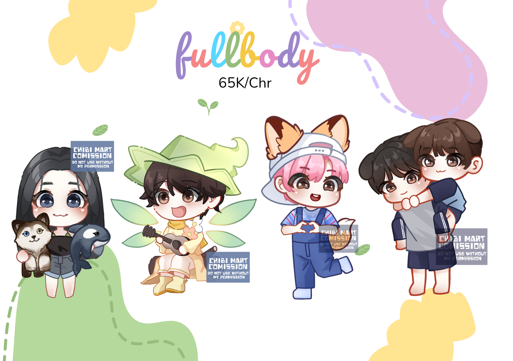 The commission will send to your Gmail after finished with PNG file. Include a white background, transparant and the colour background