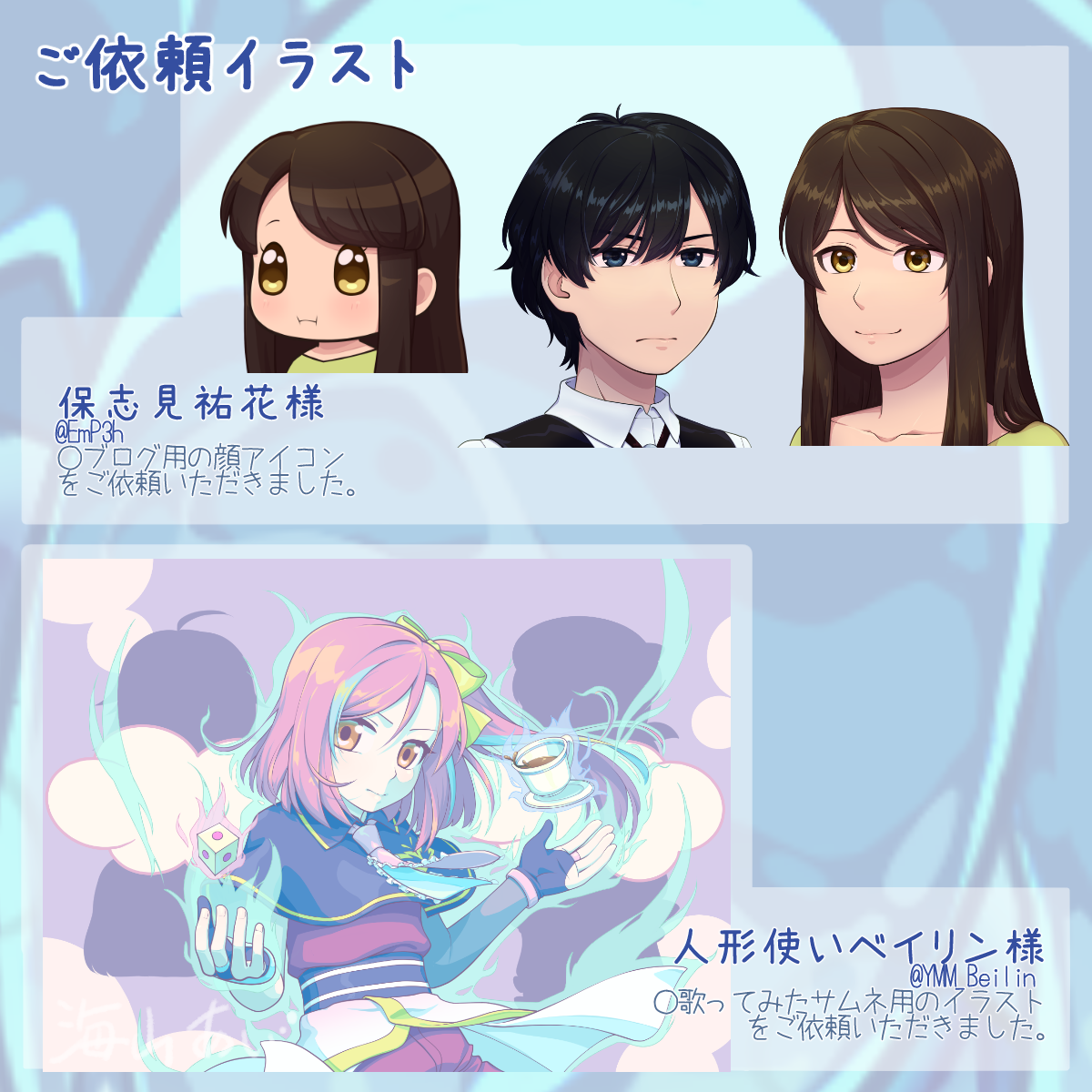 イラストレーターの海山あいと申します Vtuber、ゲーム、グッズなど様々なニーズに応えるイラスト制作を得意としております 特に、ポップで存在感のあるイラストや用途に合わせた柔軟なライティング表現にご評価をいただいております! 【制作の強み】 ・麻雀牌等、印刷仕様を熟読し、入稿まで責任をもって対応いたします ・ゲームや3Dモデリング用に、前・後・横のサイズをしっかりと揃えた三面図の制作も可能です ・Live2Dモデラー様が作業しやすいパーツ分けイラストを練習中です 【対応可能な主な用途】 ・Vtuber/IRIAMライバー様 Live2D/IRIAM用立ち絵、装飾の多い複雑なキャラデザ、表情差分等多数制作可能 ・ゲーム/TRPG 世界観に合わせたライティング・テイスト調整、アイテムイラスト、正確な三面図制作等 ・動画用/MV 編集しやすいよう、透過やパーツ分け、差分等 ・デザイン 女性/男性/人型人外/ケモノ/マスコットまで幅広く制作いたします♪ 特に人外娘が大好きです! 【制作について】 ・イメージの齟齬をなくすため、カラーラフまでの修正は何度でも無料です! ・5~7日おき、または線画や塗りなどの節目ごとに進捗報告いたします ・使用ソフト: CLIP STUDIO PAINT Pro 【料金プラン】 ・等身立ち絵目安 ・シンプル:15,000円~ ・スタンダード:18,000円~ ・リッチ:25,000円~ ・透過SD目安 ・シンプル:12,000円~ ・スタンダード:15,000円~ ・リッチ:20,000円~ ・キャラクターデザイン ・前面:10,000円~ ・三面図:15,000円~ 詳細はDMにて個別にお見積りいたします ぜひこ゚縁がありましたら幸いです よろしくお願いいたします!